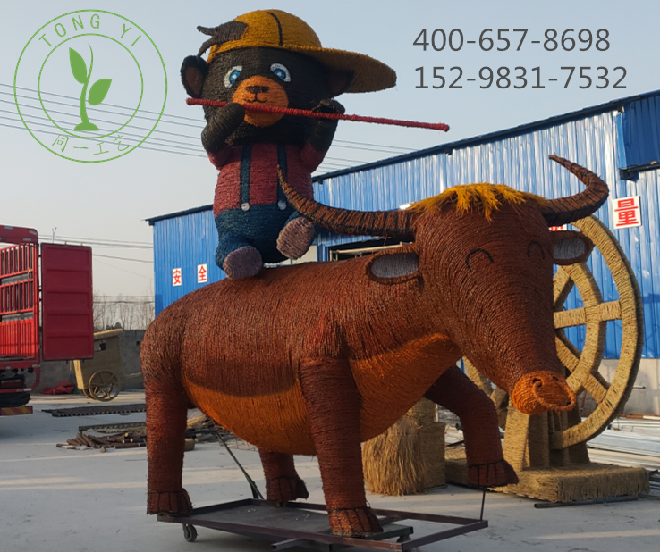 稻草工藝品卡通牧童騎牛