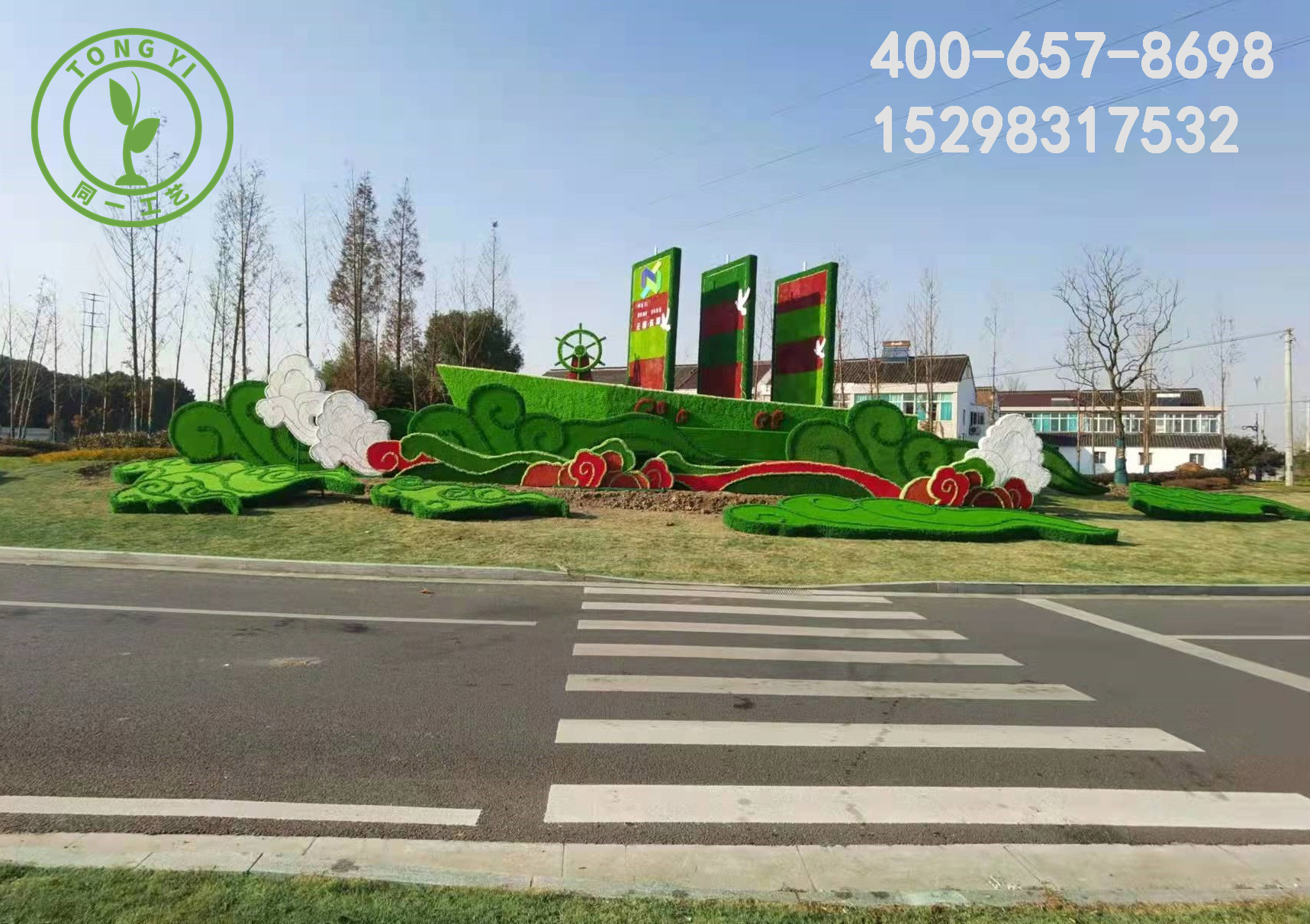 江蘇同一工藝品有限公司是一家專注于各類稻草工藝品 、卡通工藝品、仿真綠雕工藝品、立體花壇、輪胎工藝品 、五色草造型及仿真綠植墻、仿真花樹設計與制作的綜合性企業,承接風景區、旅游景點、花海山莊、農家樂、兒童樂園、特色小鎮等場所的主題點綴,景觀小品穿插,局部亮化等一些人工布景項目。公司擁有先進的設計理念,專業的制作團隊,以獨特的工藝,打造新穎的綠雕、草雕造型,贏得了客戶的青睞與信任。